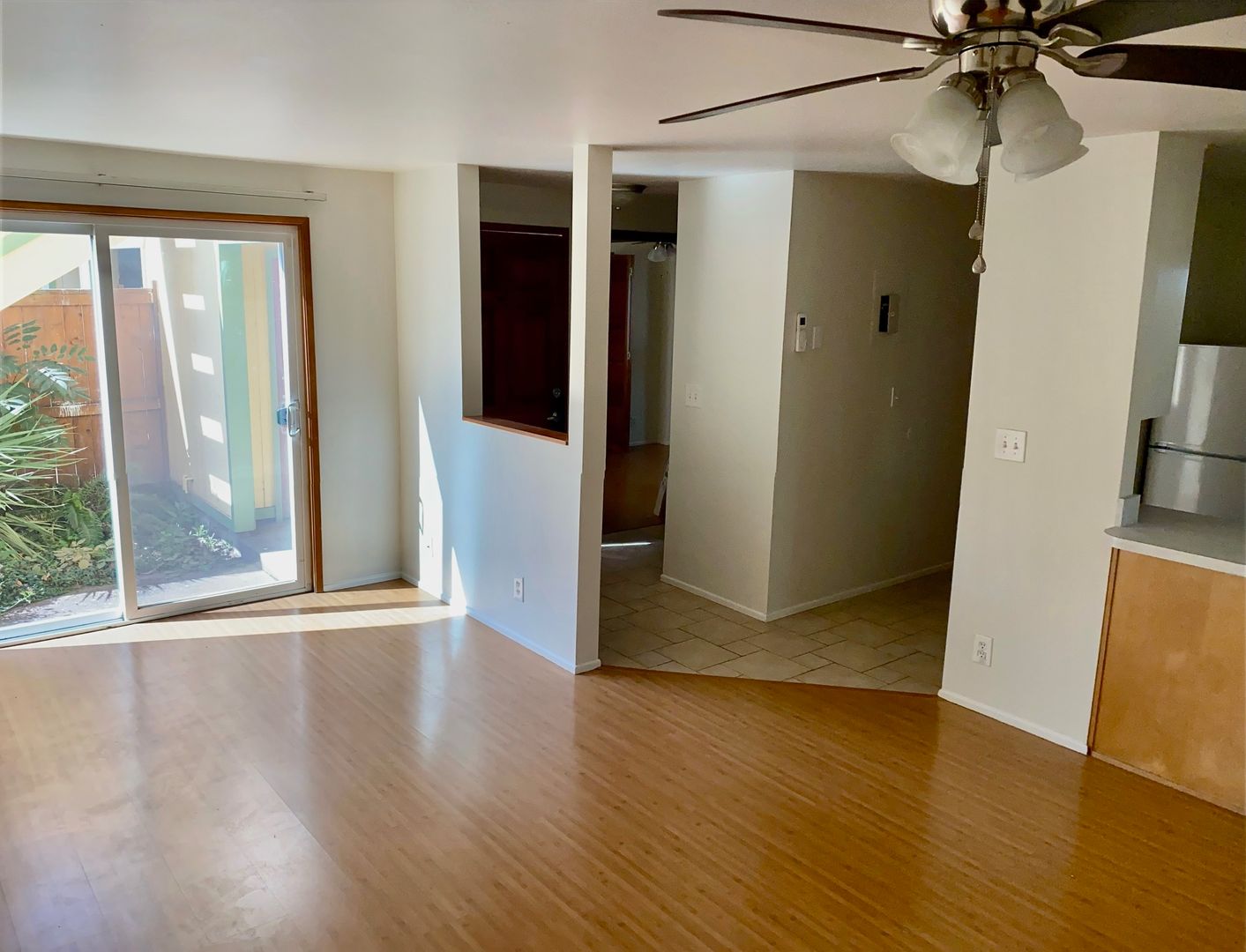 Beautiful, bright 1 bedroom, 1 bath ground floor apartment with A/C! Oak laminate wood floors in the living room and bedroom. (No carpet!) A ductless heat pump in the living room provides energy efficient air conditioning and heating. (Additional backup heating is zonal.) Approximately 550 sq ft. Large private patio and additional storage closet. Close to downtown in the Whiteaker, and convenient to Ninkasi and Blair district restaurants and shops, as well as the EmX bus line. 8-unit building centered around courtyard with gated entry and gated off-street parking. Cats OK with $300 additional deposit. No dogs.